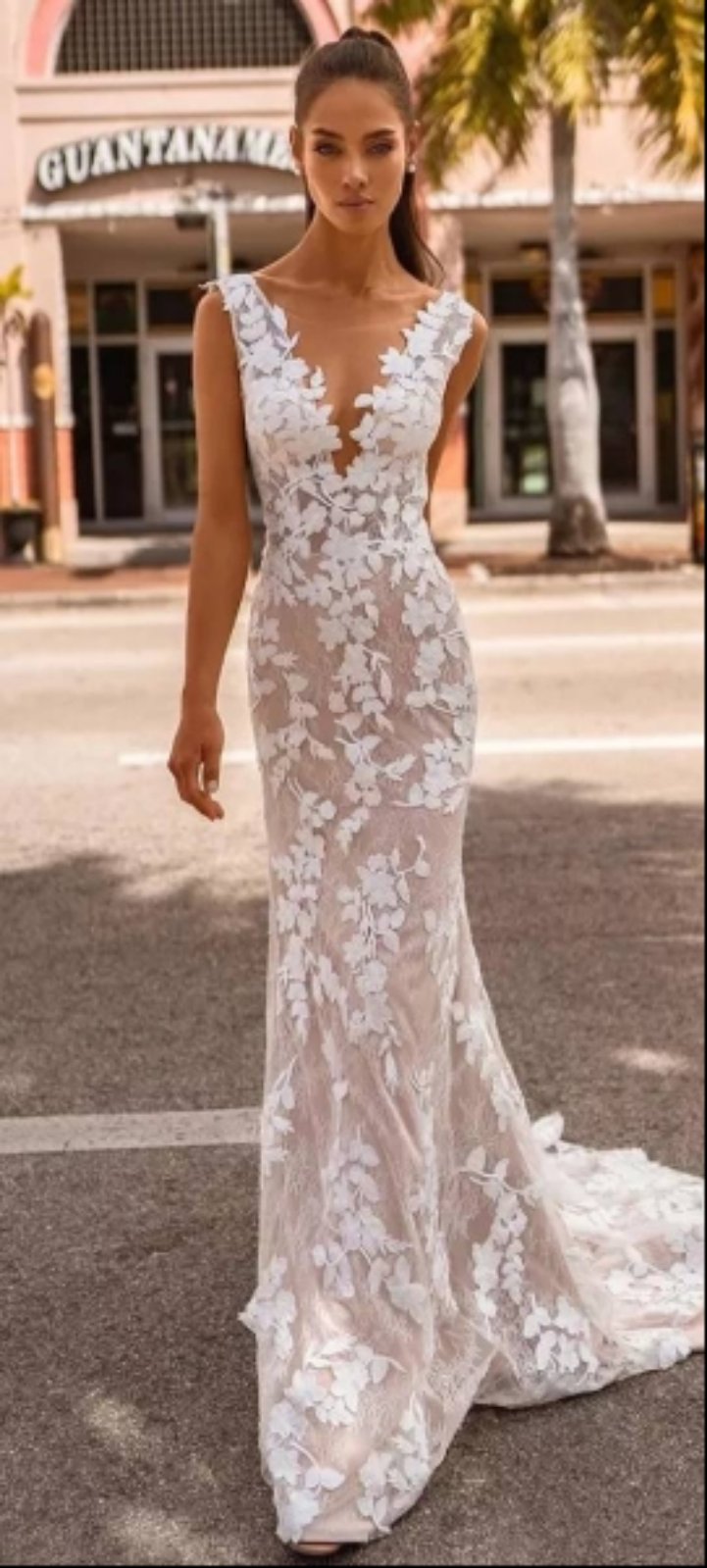Νυφικό Όλο Δαντέλα Νούντ Χρώμα