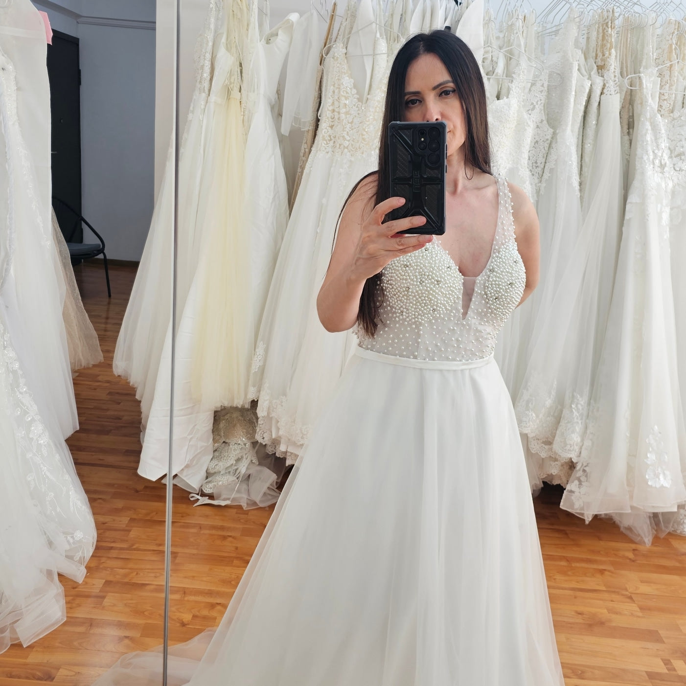 Νυφικό με Πέρλες και Τούλινη Φούστα